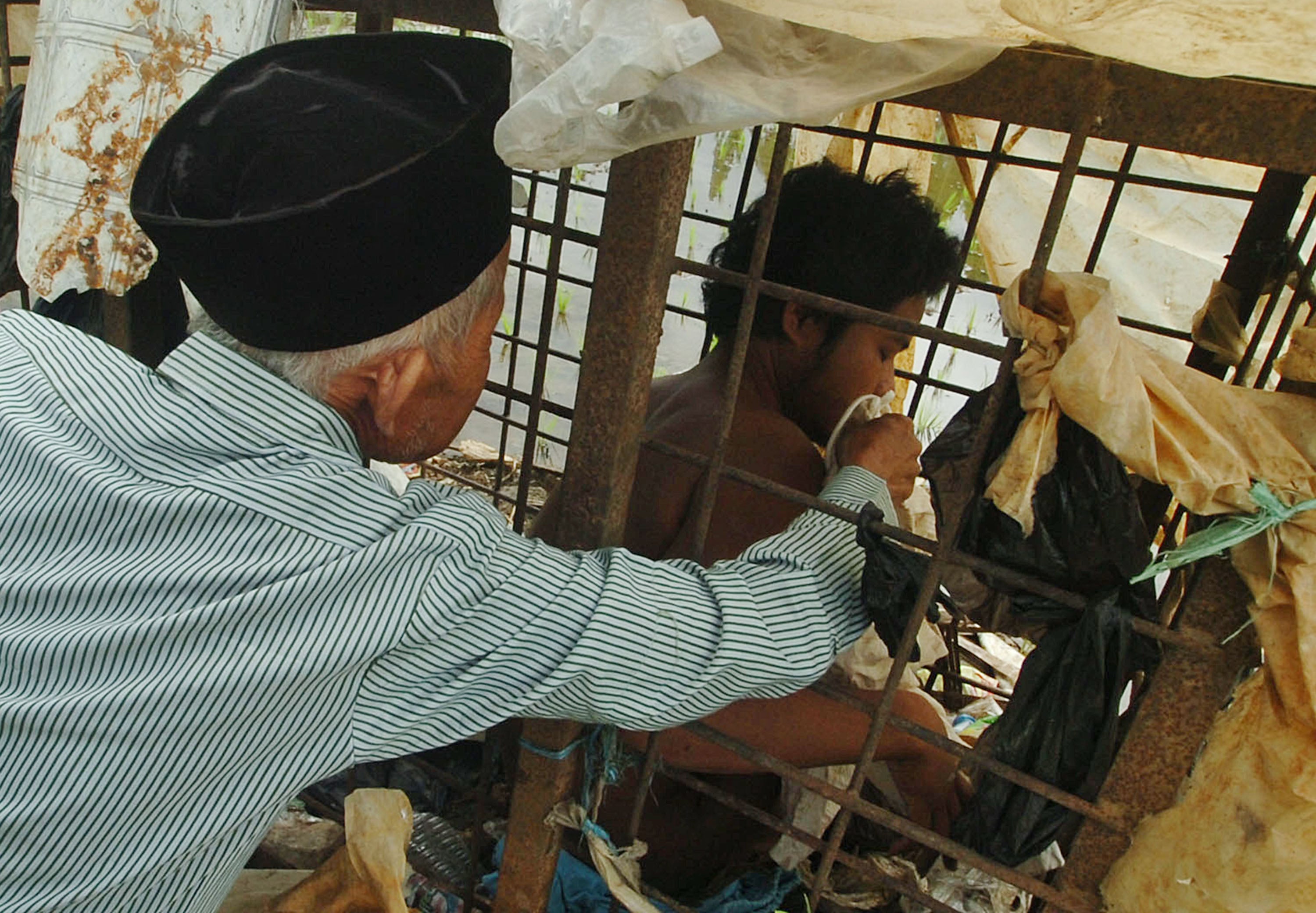 Caption: People in pasung eat, drink urinate and defecate in place. This young man has been caged since about 2009. Photo credit: ©Jefta Images/Barcroft Media/Barcroft Media via Getty Images.