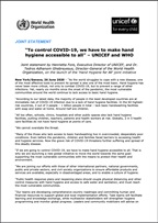 The Hand Hygiene for All Global Initiative aims to implement WHO’s global recommendations on hand hygiene to prevent and control the COVID-19 pandemic and work to ensure lasting infrastructure and behavior. This WHO and UNICEF-led initiative calls for countries to lay out comprehensive roadmaps that bridge together national COVID-19 preparedness and response plans with mid- and long-term national development plans to ensure hand hygiene is a mainstay beyond the pandemic, as part of infection prevention and control (IPC) and water, sanitation and hygiene (WASH) efforts. It also proposes a framework for coordination and collaboration among global and regional partners, with the primary aim of supporting and growing country-led efforts and investments.
