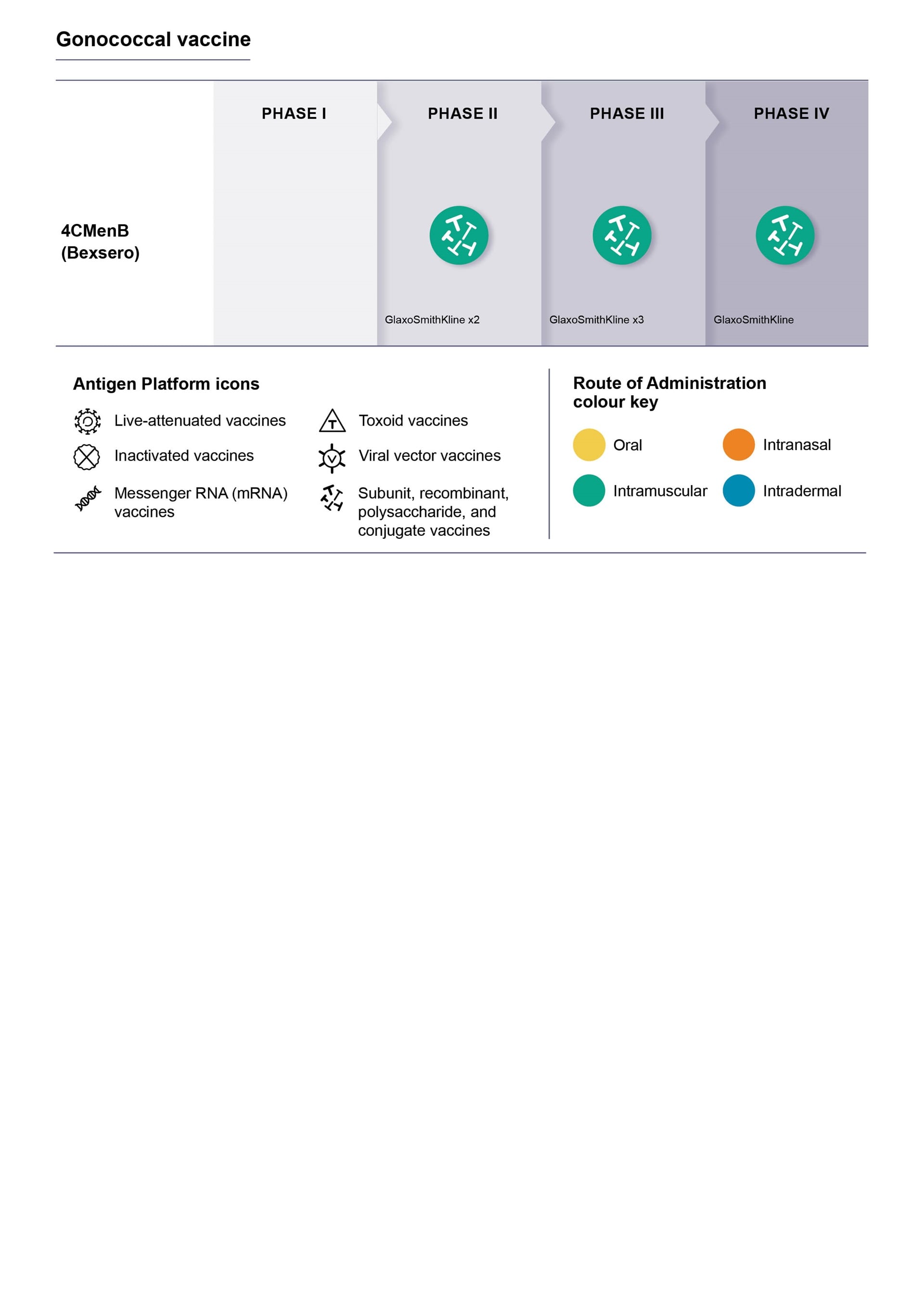 Recent data suggest vaccines for gonorrhoea are biologically feasible; in particular, epidemiological evidence shows that vaccines against a closely related pathogen, serogroup B Neisseria meningitidis outer membrane vesicle (OMV) vaccines, may reduce gonorrhoea incidence. Vaccine candidates using several approaches are currently in preclinical development, including meningococcal and gonococcal OMV vaccines, a lipooligosaccharide epitope and purified protein subunit vaccines. The Global STI Vaccine Roadmap provides action steps to build on this technical momentum and advance gonococcal vaccine development (4).WHO meetings
