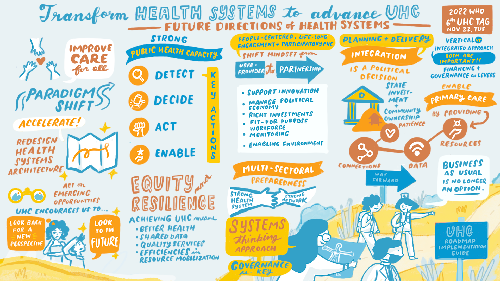We focus on innovation, data, backcasting and strategic engagement with countries on health systems transformation. We coordinate strategic and technical support to countries to drive improvements in systems and achieve Universal Health Coverage.